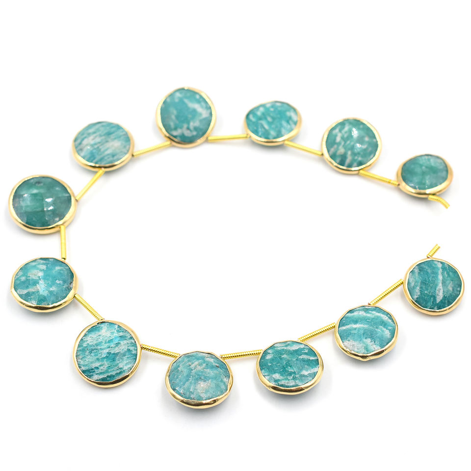 Product Name:Amazonite Silver Bezel Gold Plated Side Drilled 12 Beads Strand