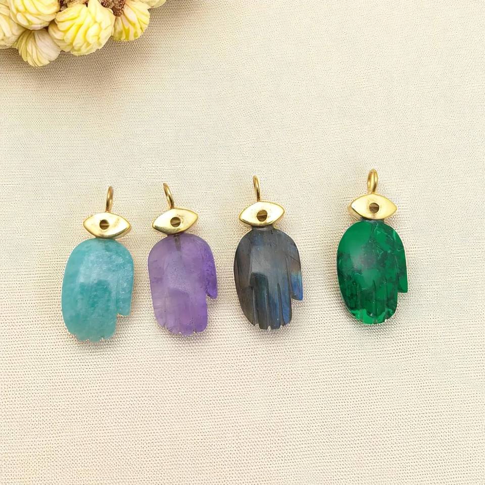 Amazonite Carved Hand Pendant 21x14mm 925Silver Gold Plated Collet Set Charms Handmade Gemstone Wholesale Silver Jewelry Charm