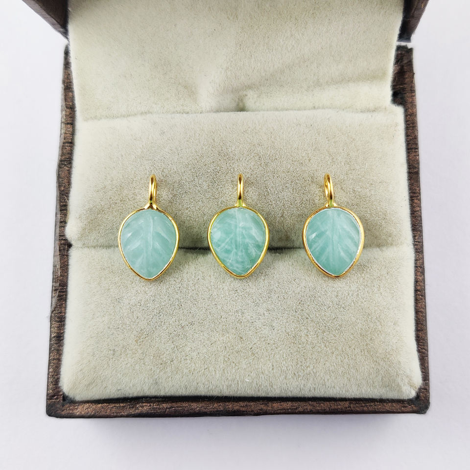 Amazonite Leaf Pendant 10mm Amazonite 925 Sterling Silver Gold Plated Handmade Pendant For Jewelry Making Women Bulk Charm