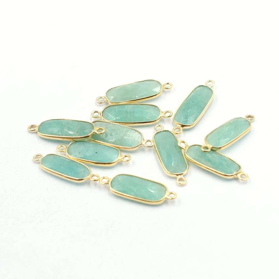 Product Name:Amazonite Long Cushion Shape Silver Bezel Gold Plated Connector