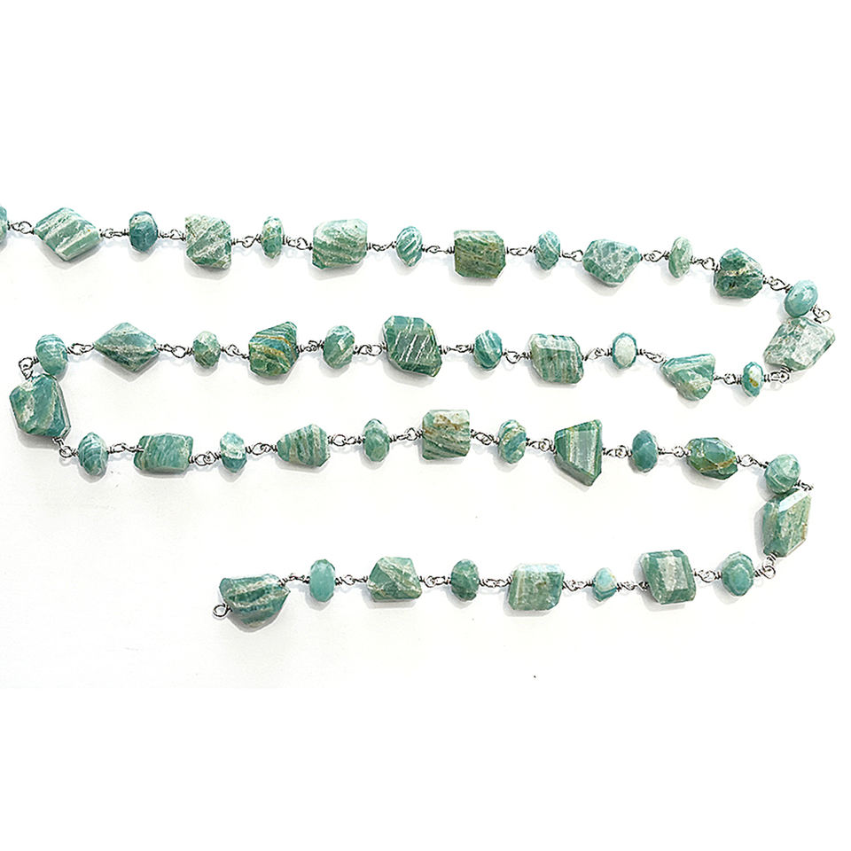 Product Name::Amazonite Sterling Silver Silver Plated Rosary Wire Wrap Chain