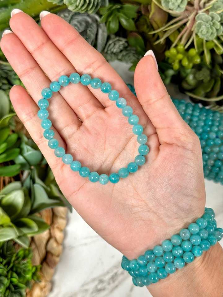 Amazonite & Quartz Beaded Bracelet Natural Gemstone Crystal Healing Jewelry for Gift or Engagement