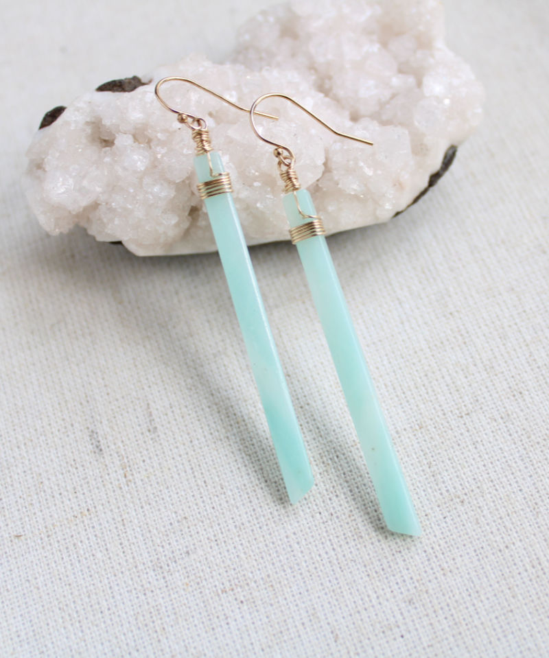 Amazonite spike 925 sterling silver gold plated charm hanging earrings for women modern designer handmade wire wrapped earrings