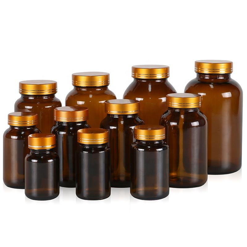 Amber Glass Medicine Container Capsule Pill Bottle Tablet Empty Nutrition Health Supplement Vitamin Dietary Supplement Bottles