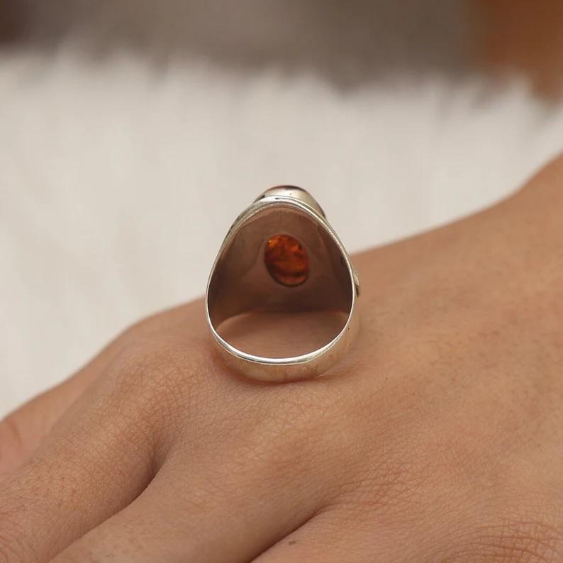 Amber Ring 925 Sterling Silver Gemstone Jewellery Promise Ring November Birthstone Gift For Women Boho Ring Designer