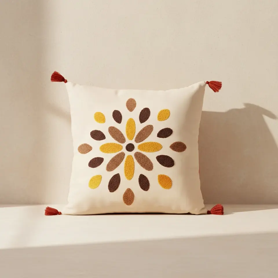 Amber Sun Luxury Oriental Embroidered Cushion Cover Floral Fluffy Pattern Jute Wool 18x18 Filling for Christmas Decorative Floor