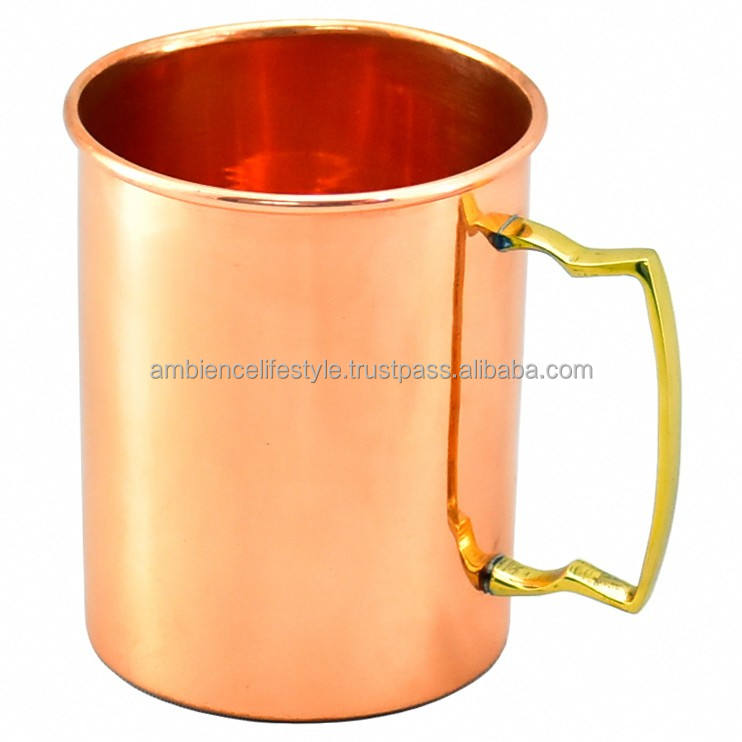 Ambience Lifestyle Moscow Mule Mug Best Quality Custom Glass with Pure Copper and Brass Handle Drinkware for Beverages