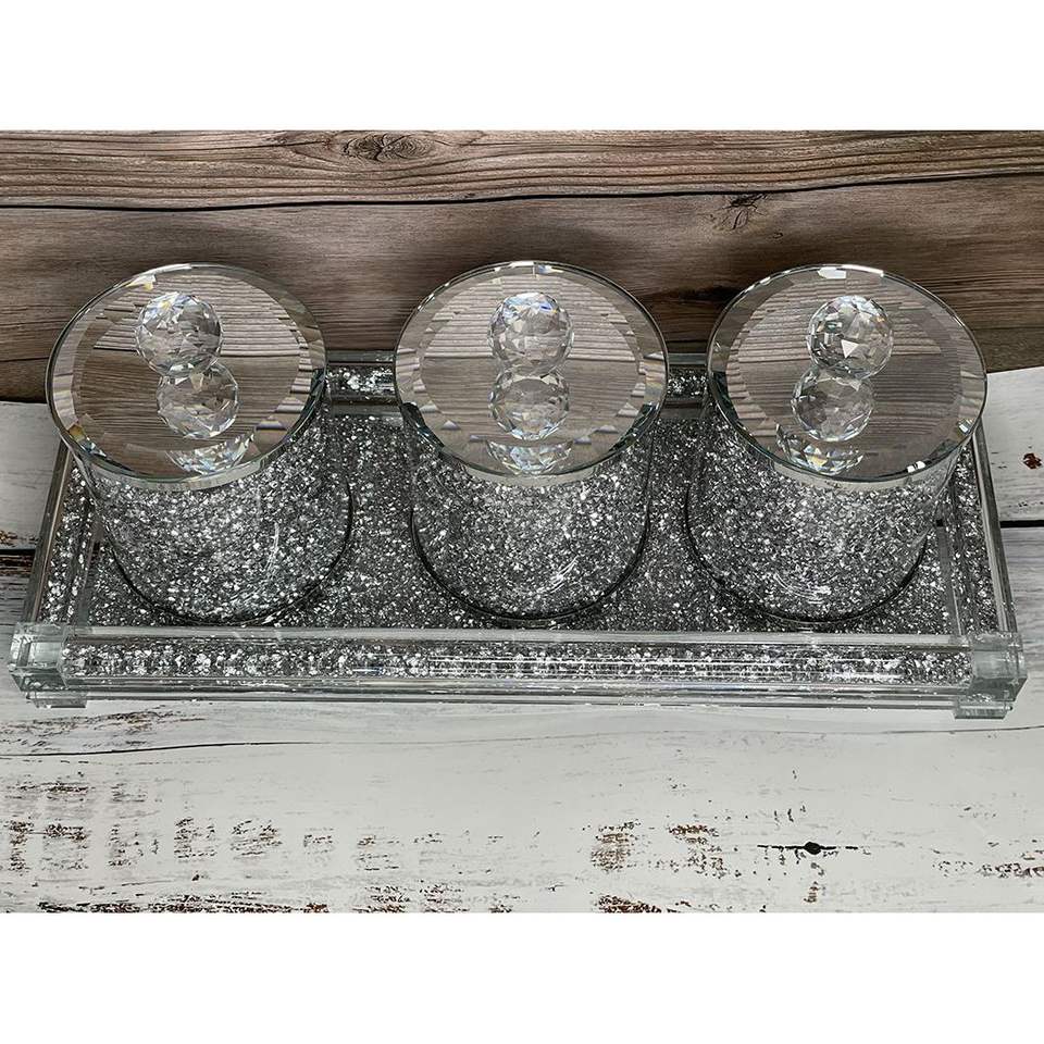 Ambrose Exquisite Crushed Diamond Glass Tea & Coffee Canisters with Tray Premium Accessory in Gift Box
