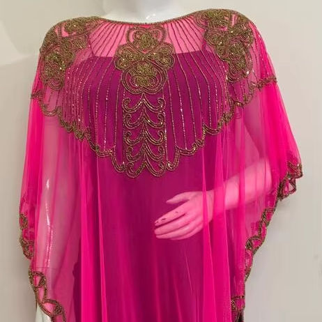American Best Seller Women's Soft Net Eco-Friendly Slit Party Gown Graceful Embroidery Flowy Design Poncho Shrug Dress Maxi