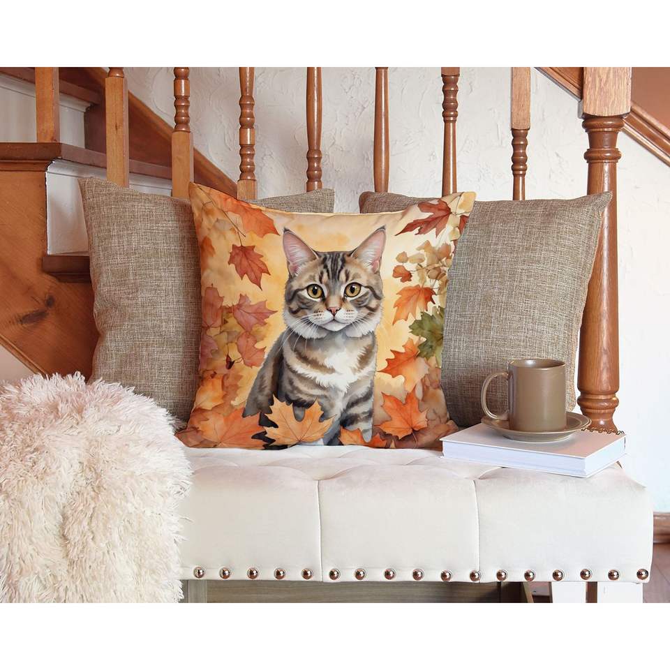 American Bobtail Cat Decorative Outdoor/Indoor Throw Pillow 14x14 Machine Washable for Couch Bed Patio Fall Leaves Design