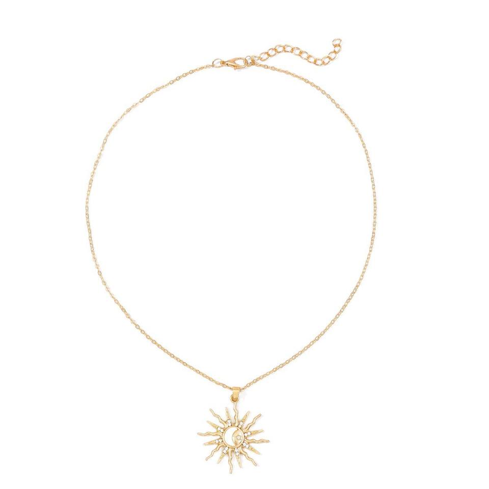 American Cross-border E-Commerce Jewelry Fashion Tai Silver Pearl Ball Shape Link Chain Moon Pendant Star Engagement Necklace