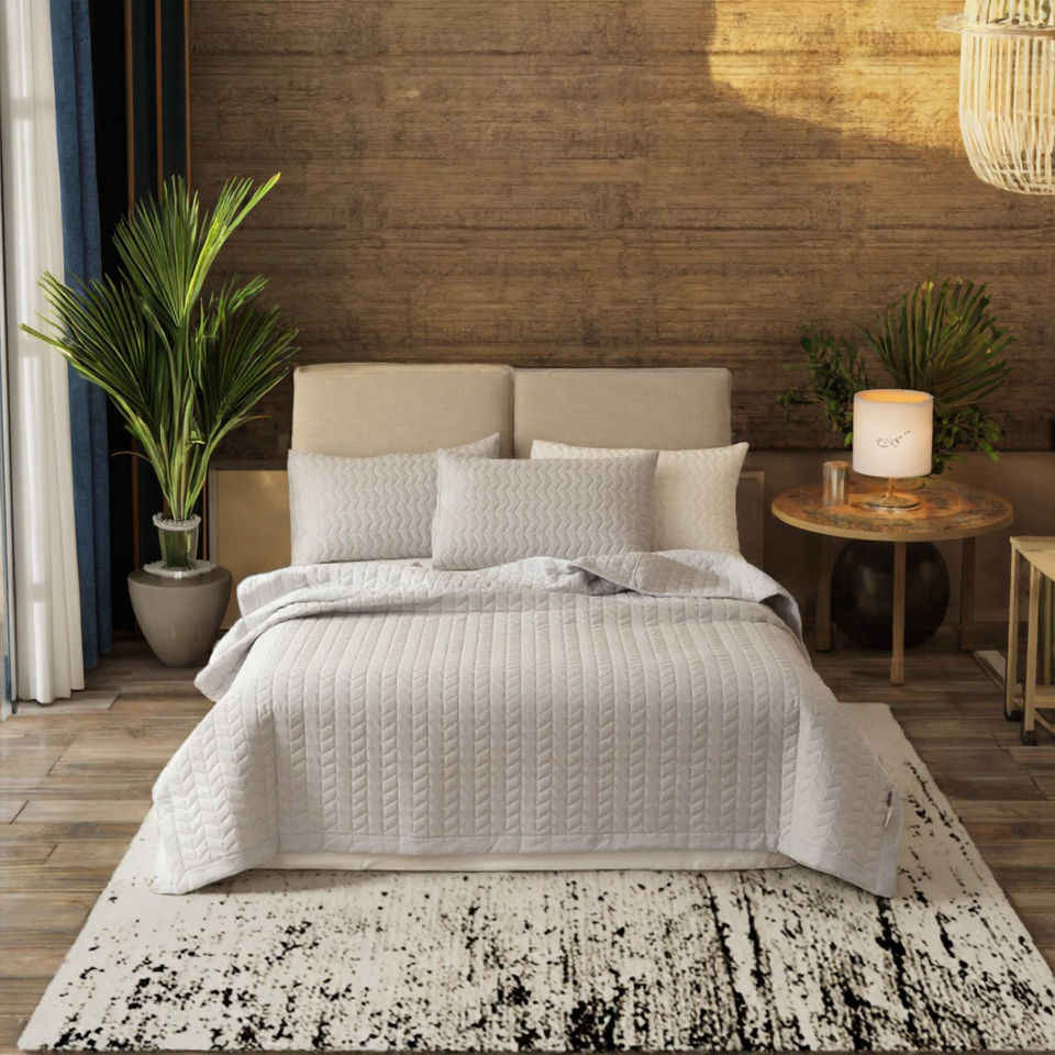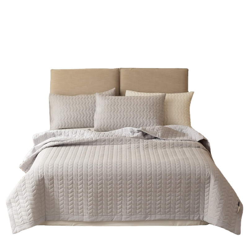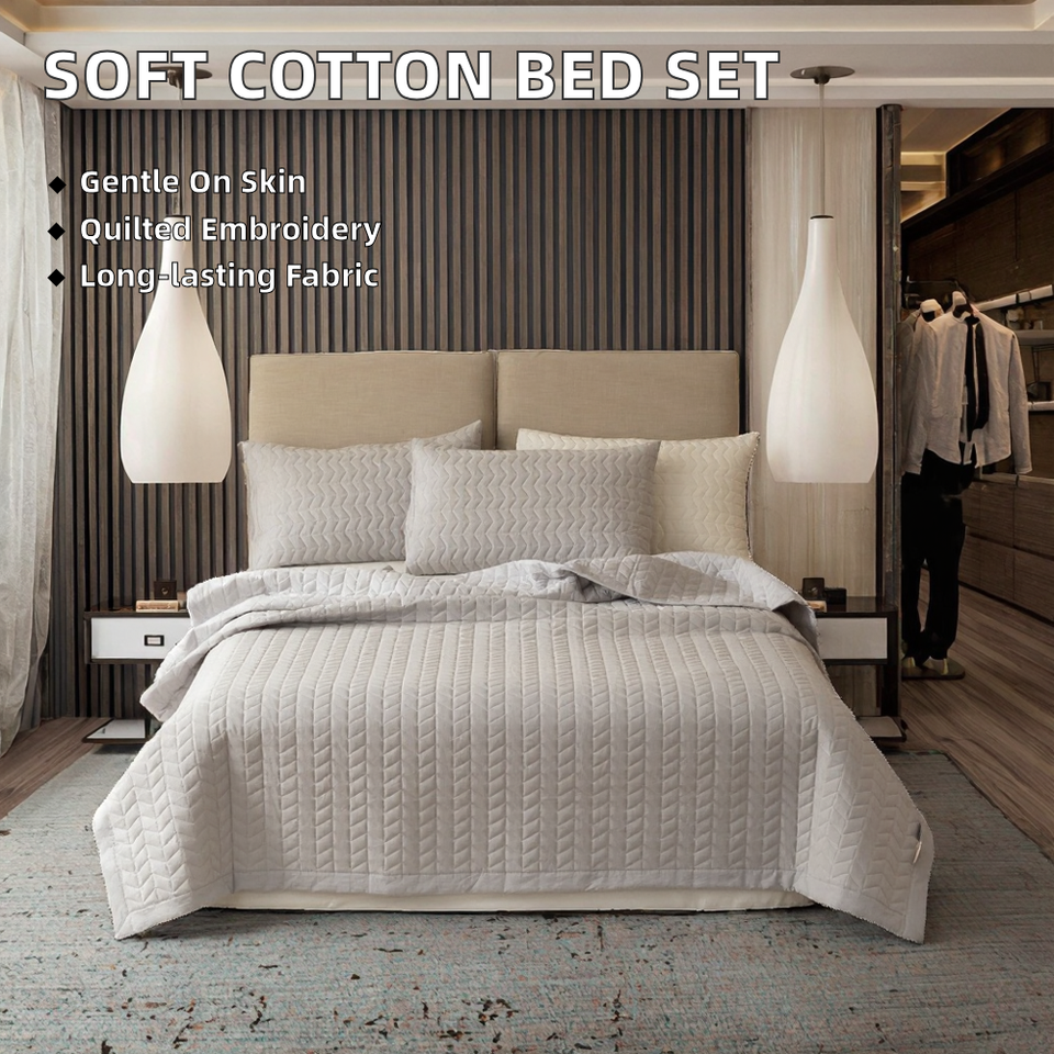 American Design 100% Washed Cotton Comforter Set Solid Color Bedspread Geometric Embroidery Quilting Modern Polyester 200TC