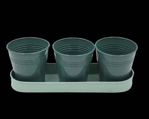 American Design Flower Vase Pot Light Dark Green Colours Indoor Garden Decoration 3 Planter Iron Oval Tray Bronze Metal Material