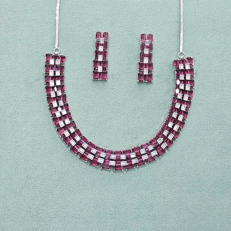 American Diamond Classic Necklace Set with Rhodium Plating High Quality Fashion Export Product Available Online