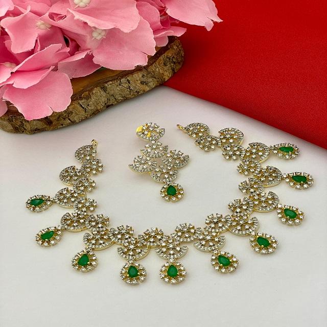 American Diamond Premium Necklace Set Indo Western Wear Necklace With Earrings Free Shipping High Quality Office Wear Jewelry