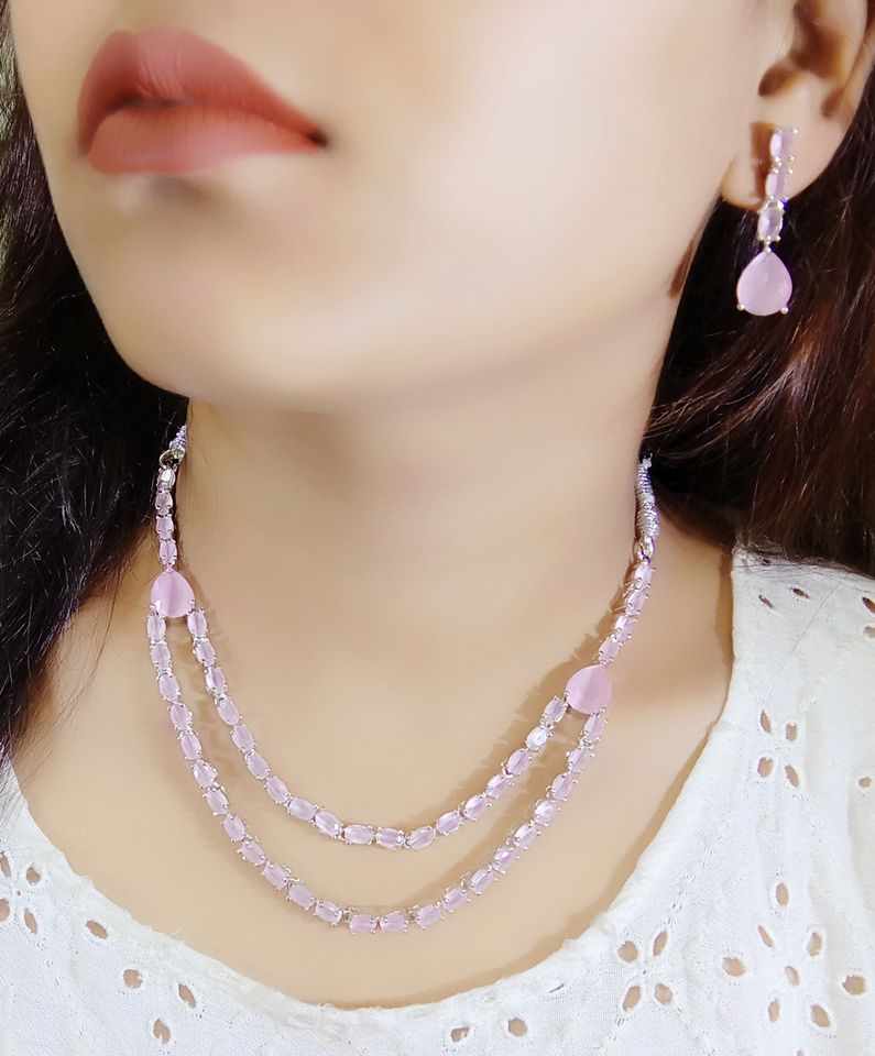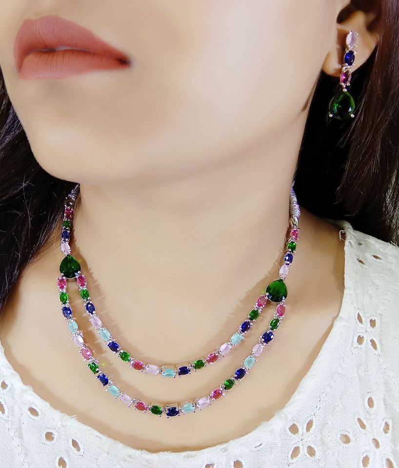 American Diamonds Necklace Set with AD Earrings Jewellery Set Jewellery Collection 2025 Luxurious Moissanite