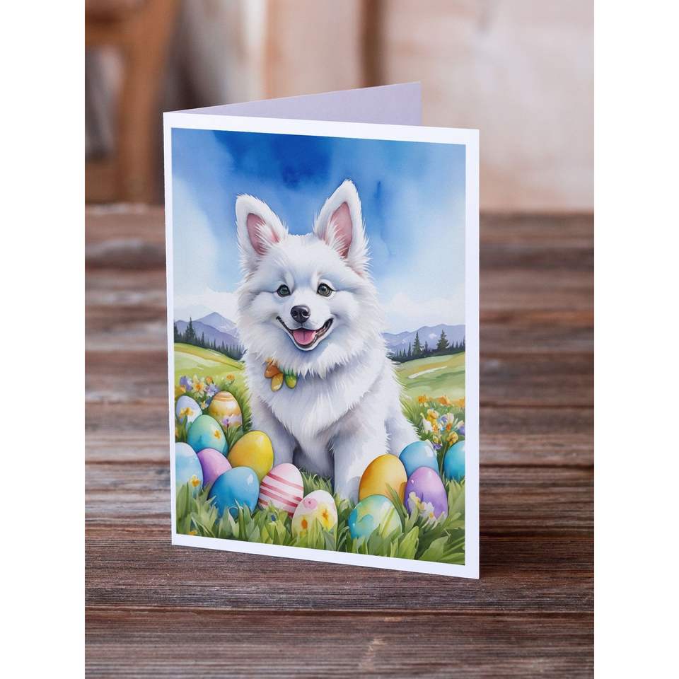 American Eskimo Whimsical A7 Size 5x7 Blank Note Cards Pack of 8 Easter Egg Hunt Greeting Cards with Envelopes
