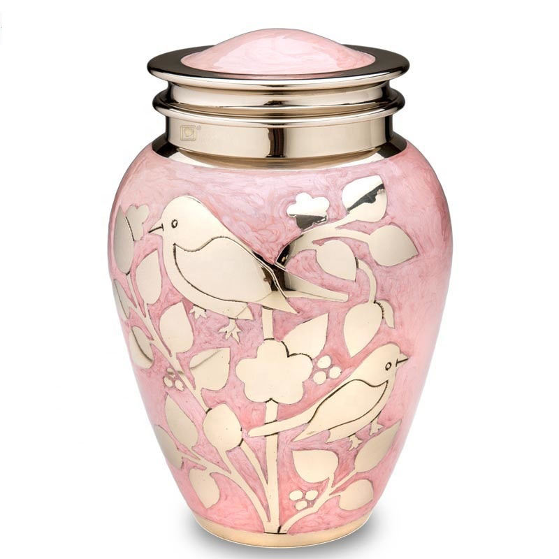 American/European Pink Silver Blessing Birds Metal Urn keepsake Ashes Modern Cremation Velvet Bag Decorative Funerals Supplies