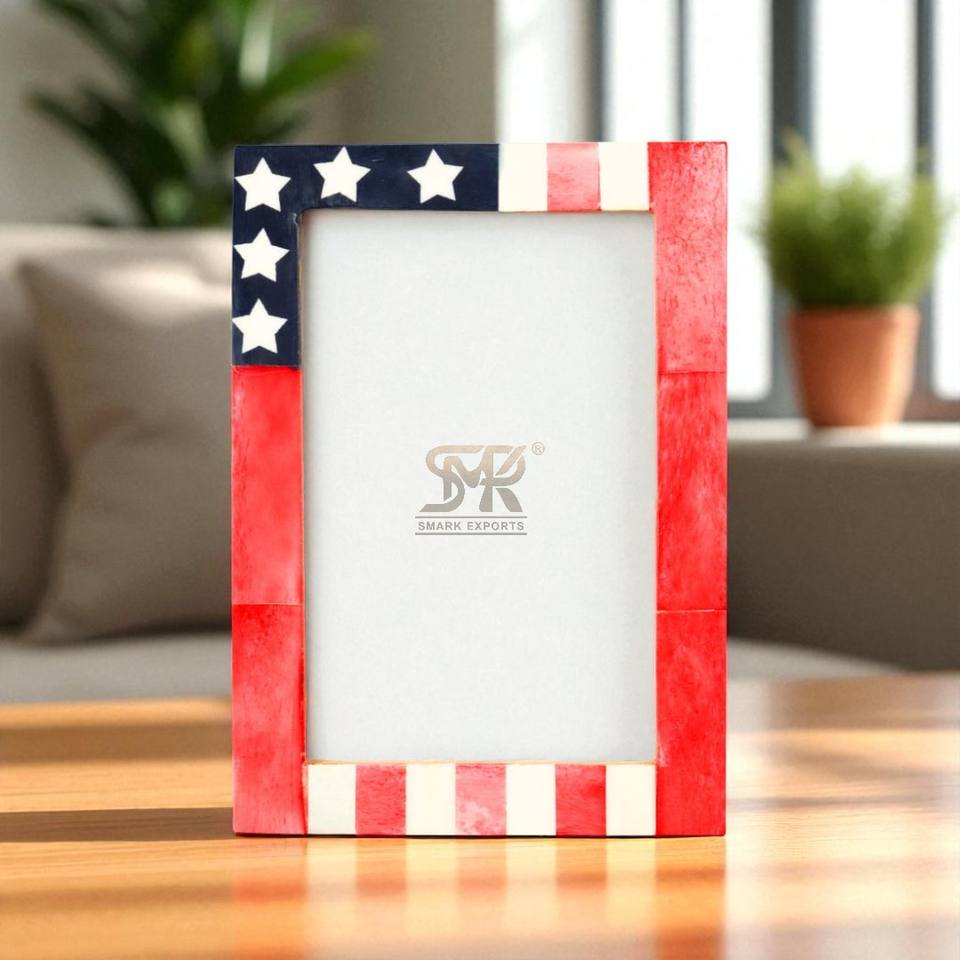 American Flag Design Bone Resin for Inlay Rustic Modern Handmade Customizable Photo Frame Red White Blue Tabletop Office