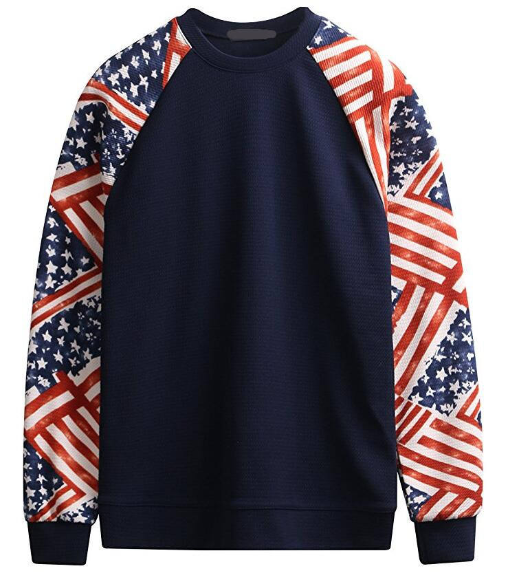 American Flag Digital Printing Long Sleeve Hooded Crew Sweatshirt 100% Polyester Oversized Fleece Matching Rib Belt Cuff Autumn