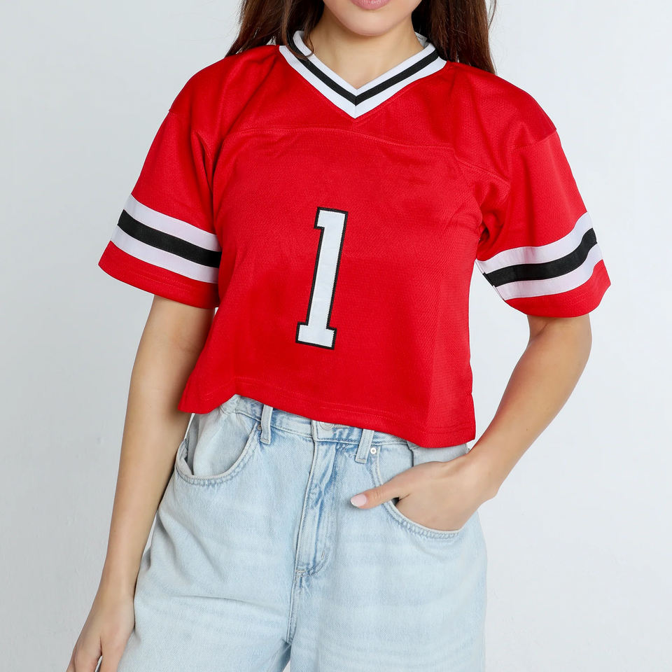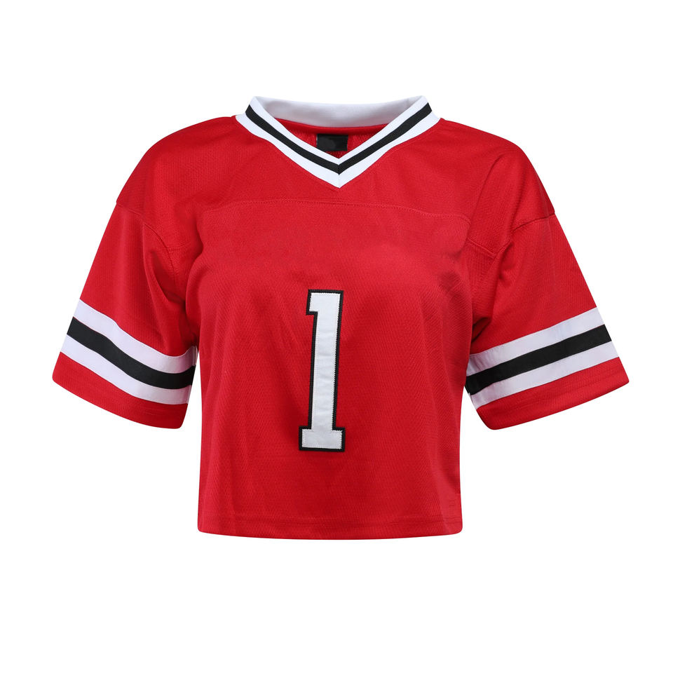 American Football Casual Women's Print Tops Contrast Color Short Sleeve Loose Tops Street Wear Sports Jersey for Women