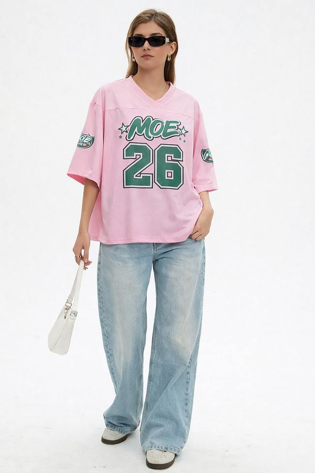 American Football Jersey Oversize Breathable Anti-UV Quick Dry Pink Mesh Jersey Streetwear V Neck 26-Print Loose Fit Summer Top