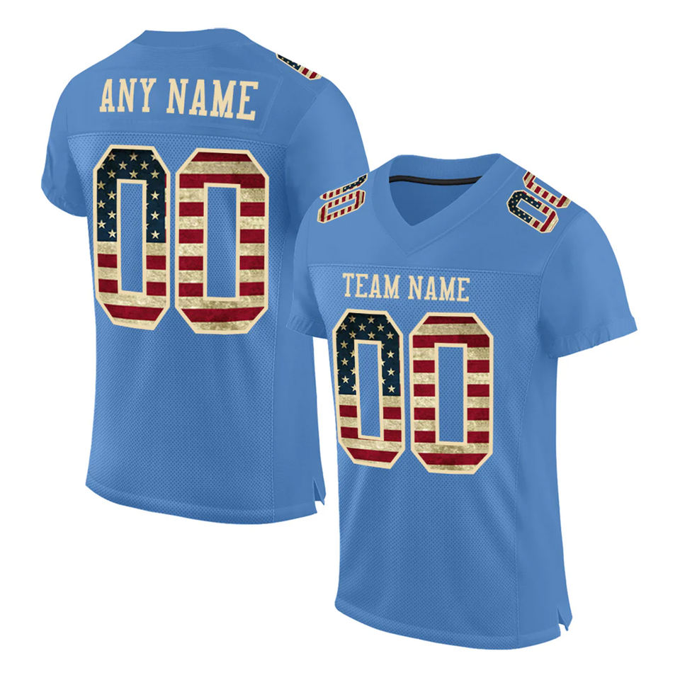 American Football Jerseys Mesh Shirts V Neck Sublimated Printed 260 GSM Blue Color Sort Sleeve Football Mesh Jersey