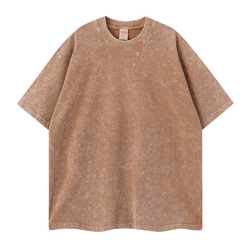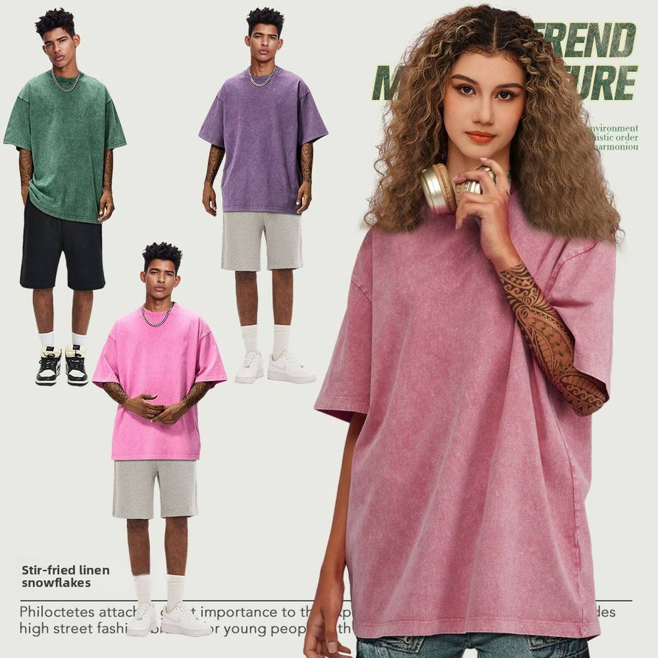 American High Street Vintage Washed T-Shirt 260g Solid 100% Cotton Oversized Short Sleeve Summer Top Anti-Pilling National Trend