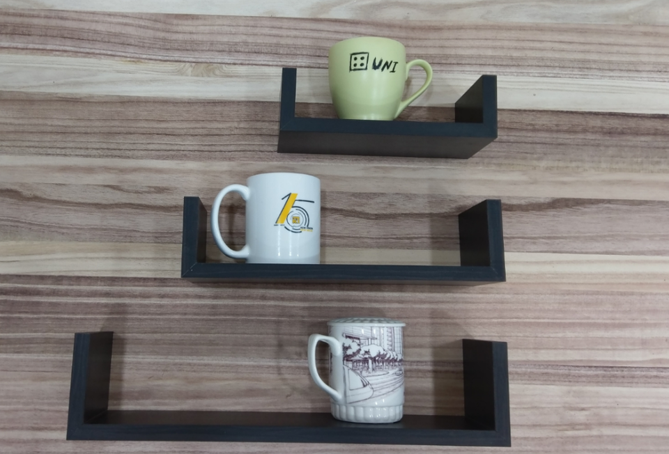 American Home Decor Modern Eco-friendly Wood Nordic Curved Wall Shelf Set of 3 Solid Floating U-Shape for Living Room Furniture