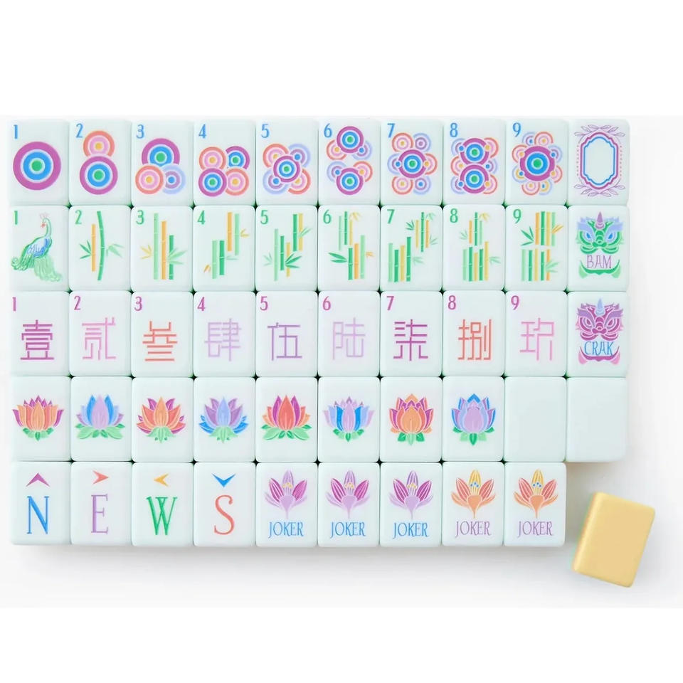 American Mahjong Sets Tiles with Joker Tiles Yellow Printing Pattern Friends Party Mahjong Board Game Entertainment Tiles