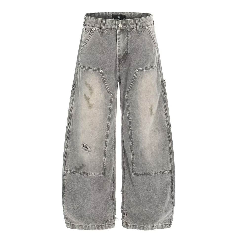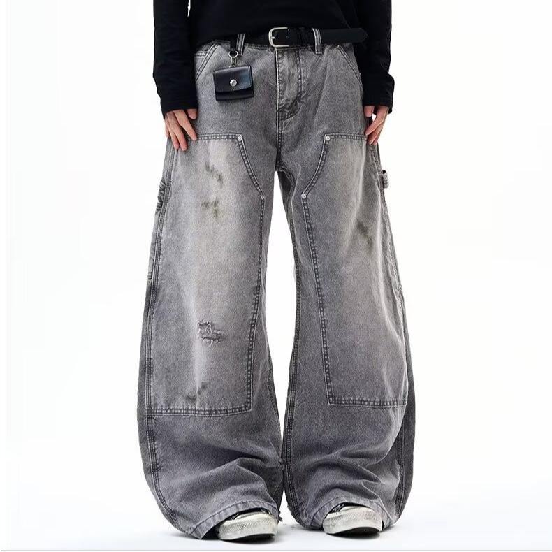 American Retro Deconstructed Washed Scimitar Jeans for Men and Women, Slightly Flared, Slimming, Loose, Casual, Straight-Leg,