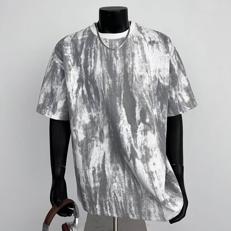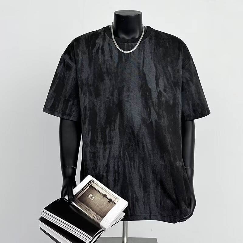 American Solid Vintage Short Sleeve T-Shirt Men Summer Trendy Brand New Heavyweight Street Style Design Loose Casual Breathable