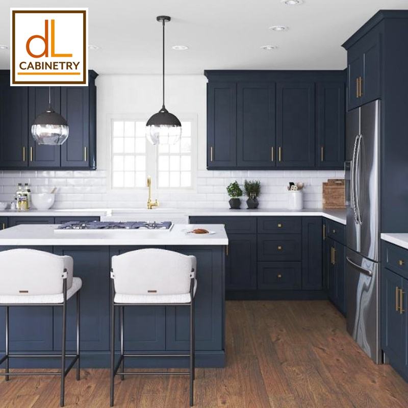 Solid Wood Kitchen Cabinets Wooden American Standard Blue Shaker RTA