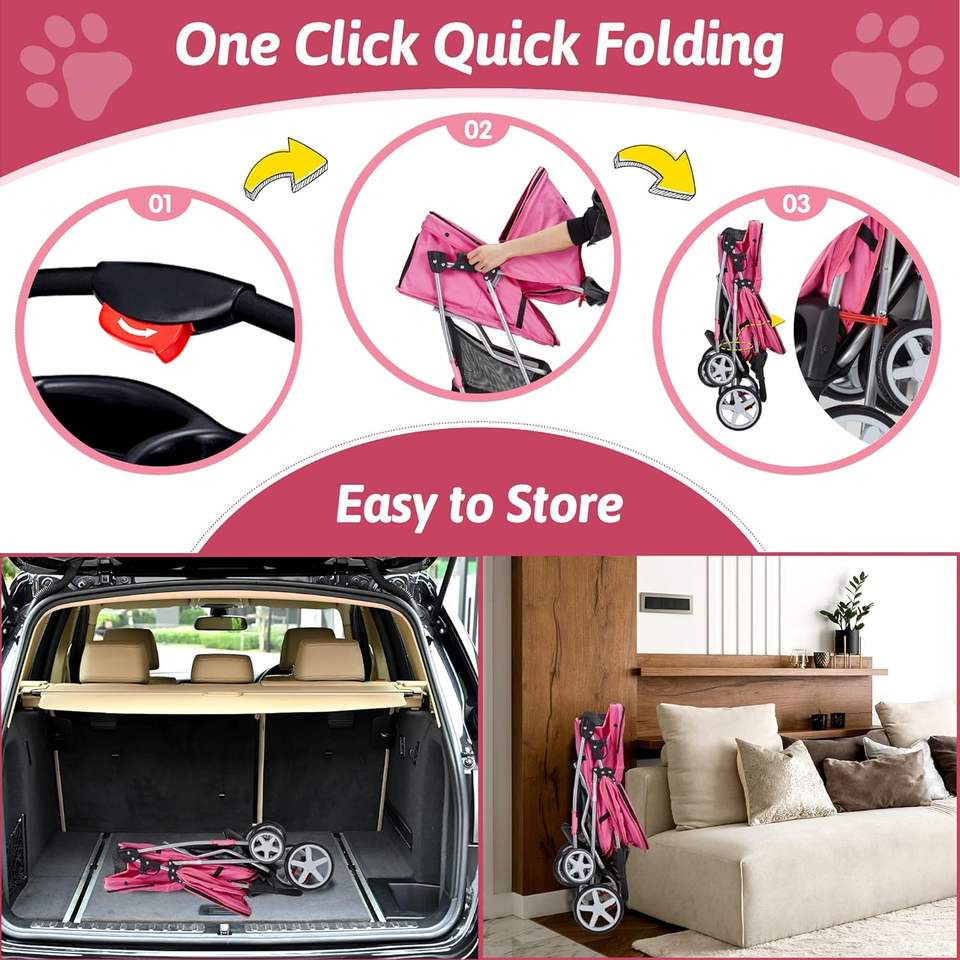 American Standard TH-PSP-433 Dog Cat Stroller Portable Folding Jogger with Storage Basket for Medium Small Cars