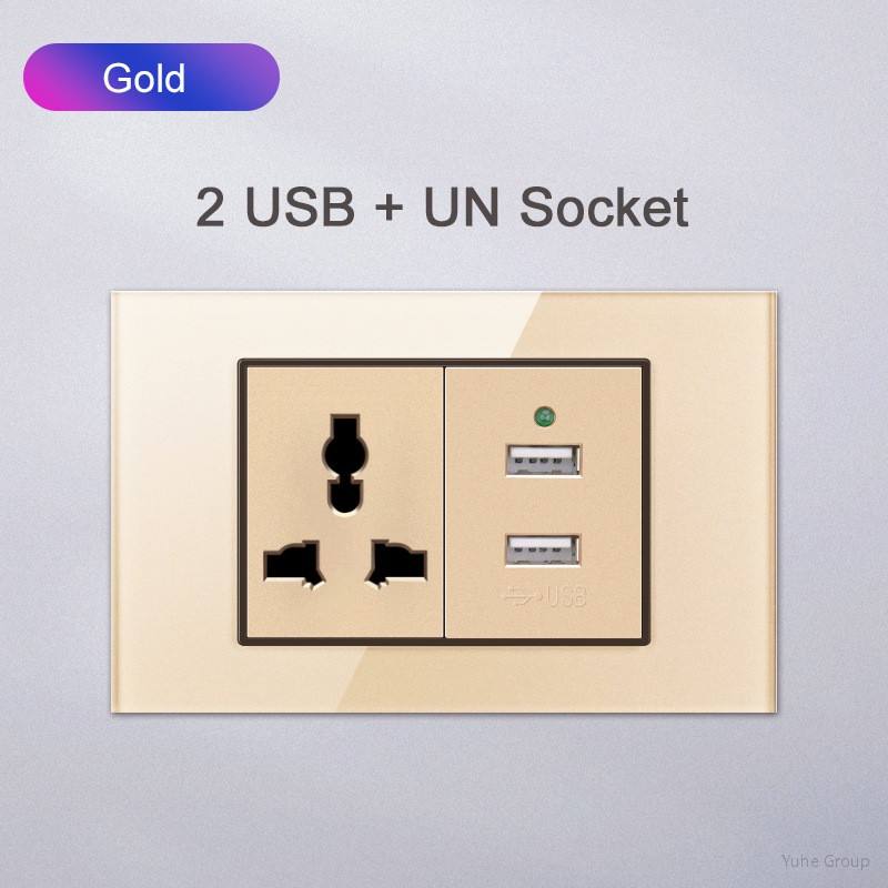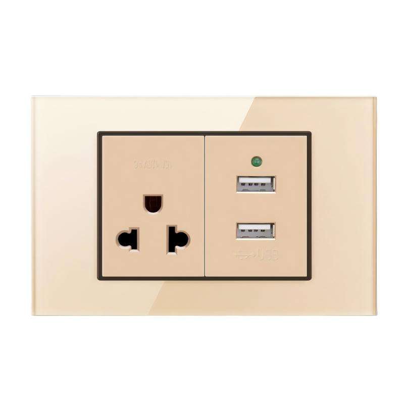 American Standard Wall Socket and Switch with USB/Type-C Touch Panel Glass Material 16A 118 Household Power Socket