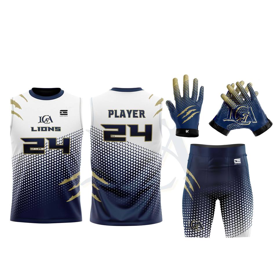 American Style 7v7 Youth Football Compression Set 22 Custom Sublimated 7on7 Uniforms Printed Techniques 7 on 7 Football Uniforms
