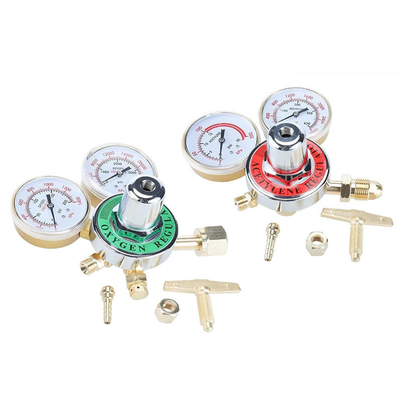 American-Style All-Copper Oxygen Acetylene Pressure Gauge Kit CGA540 CGA510 Made of Durable Brass Material for Welding Cutting