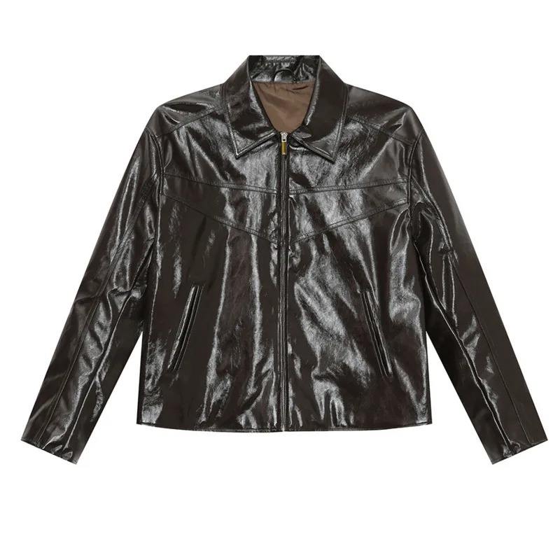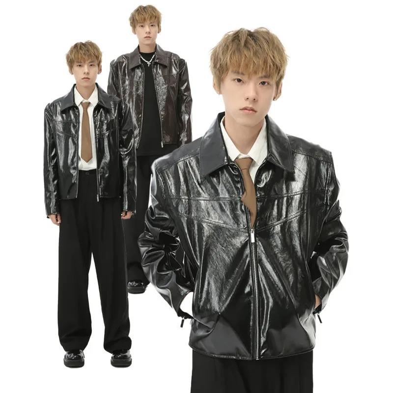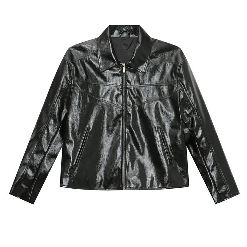 American Style Bright Surface Men's Genuine Leather Canvas Jacket Zipper Waterproof Breathable Fashion Casual Winter Solid Color