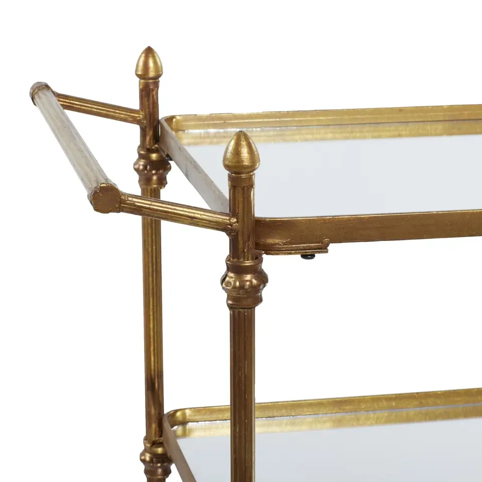 American Style Ceramic Rolling Party Cart Handmade Golden Hotel Bar Trolley Premium Eco-Friendly Plant Pattern Event Cart