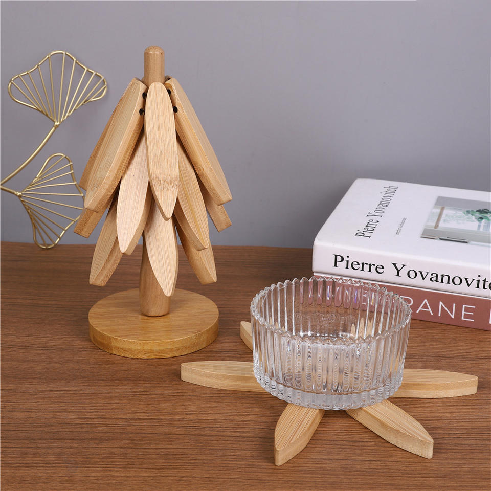 American Style Creative Bamboo Coaster Cup and Tea Holder with Logo Engraving 5mm Thickness Japanese Style Wooden Accessories
