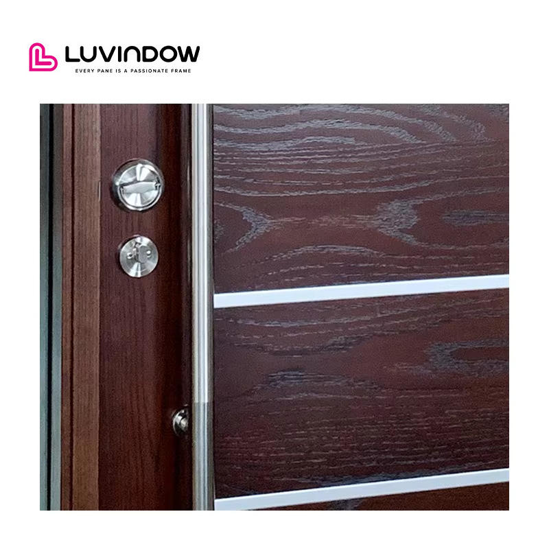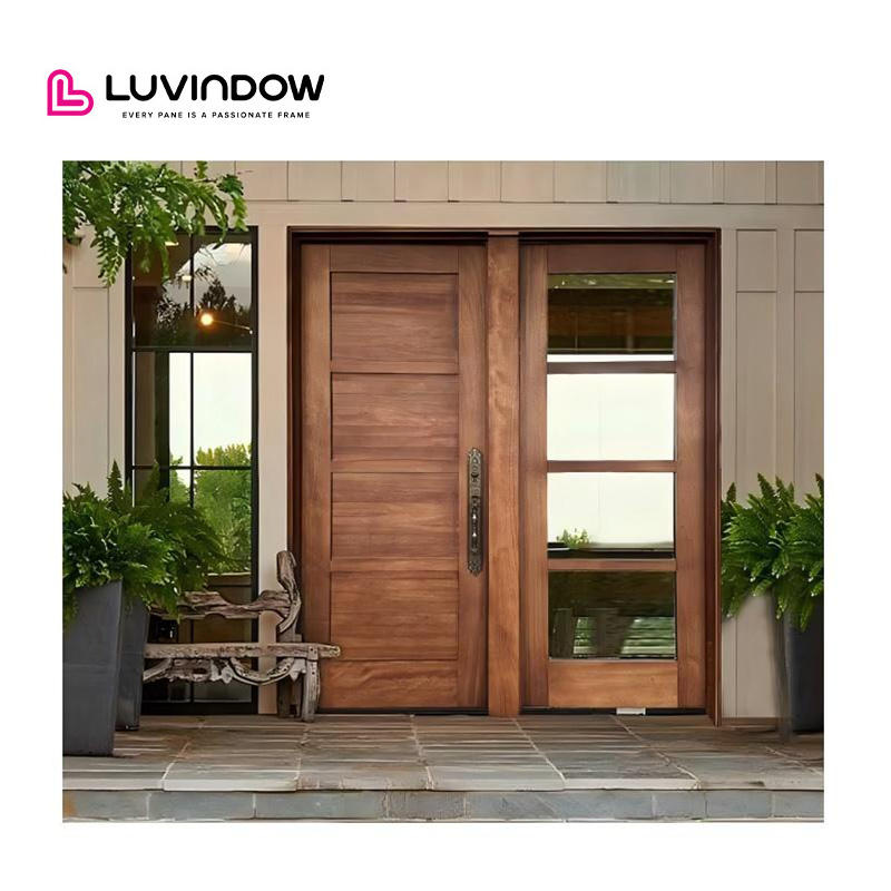 American Style Front Doors With Glass Entrance Thermal Break Sound Insulated Grid Design Wooden Entrance Doors