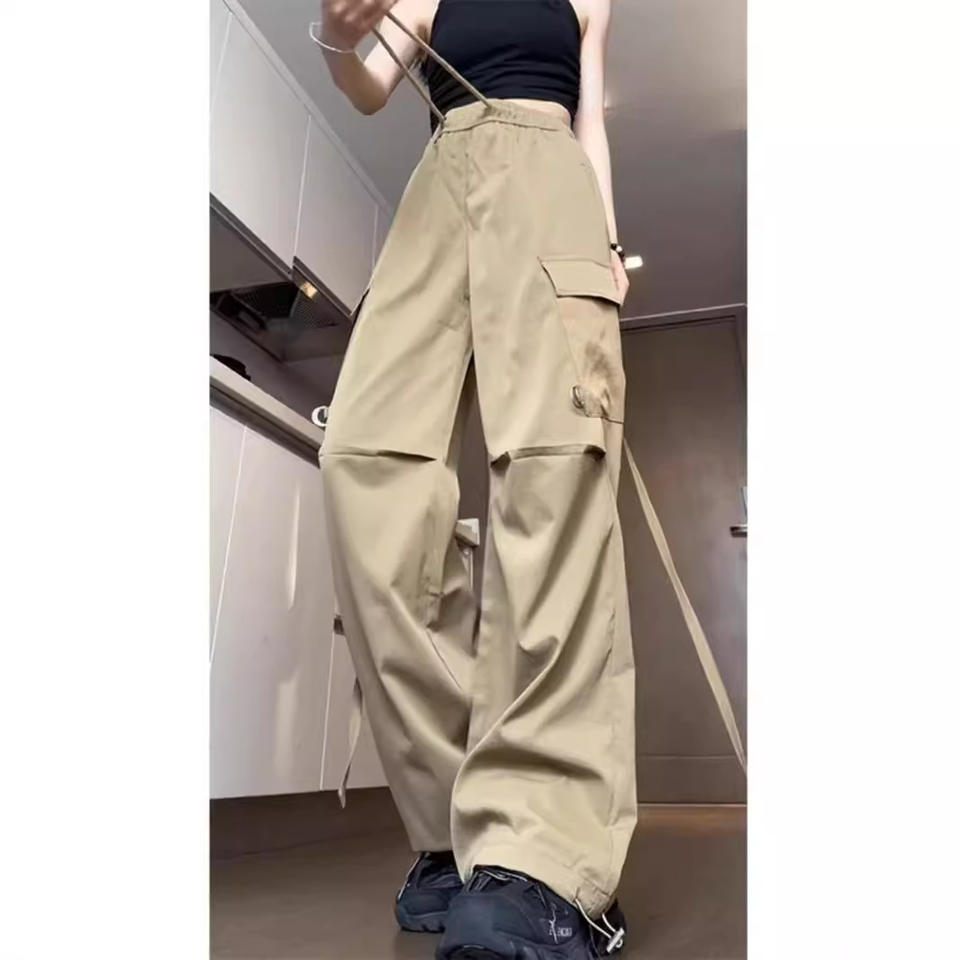 American Style Functional Cargo for Men and Women, Summer Ribbon Design, Large Pocket Ice Silk Quick-Dry Wide-Leg Pants