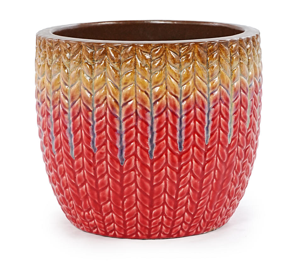 American Style Glazed Red-Gold Leaf Pattern Ceramic Flower Pot Drainage Hole-Eco-Friendly Durable Garden Planter for