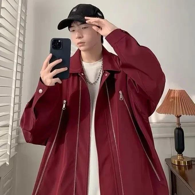 American Style High Street Zip-up Red Jacket for Men Summer 2024 New Bomber Jacket Trendy Brand Casual Cool Style