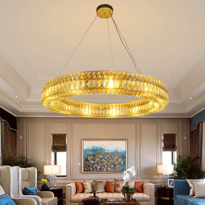 American Style Luxury Round Glass Chandelier Custom Gold Copper Pendant Light Villa Hotel Dining Room Elegant Indoor Light Decor