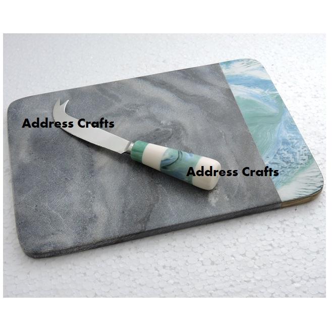 American Style Marble Chopping Blocks Kitchenware Stainless Steel Cheese Knife With Marble Handle Decorative Resin Cheese Board