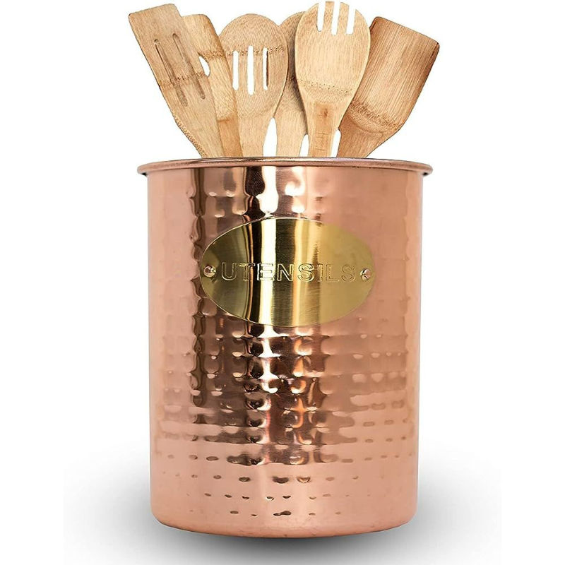 American Style Metal Steel Silver Cutlery Holder Utensil Caddy With Round Shape Tabletop Decorative Storage Organizer