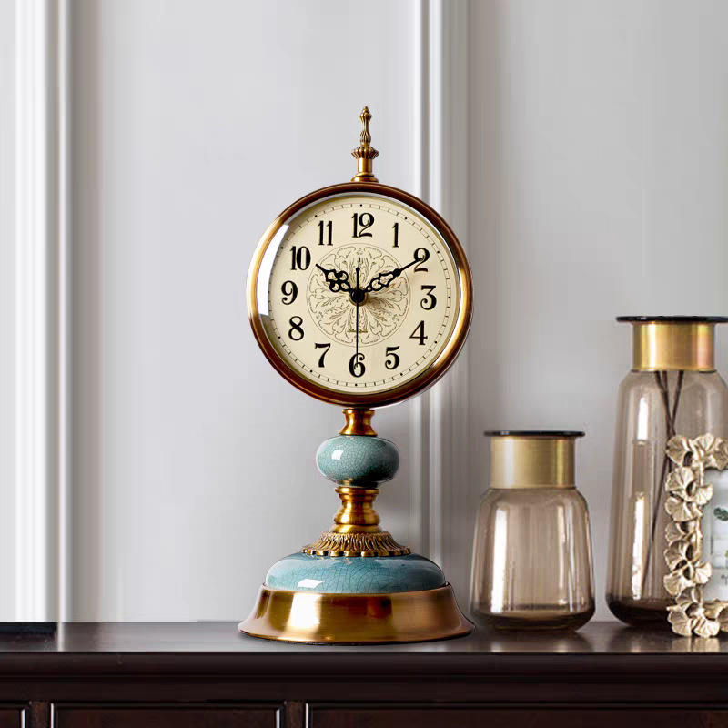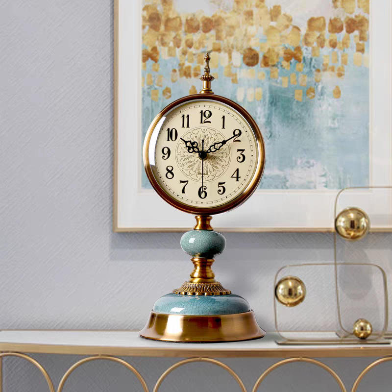 American Style Retro Table Clock Circular Gold Base Home Decoration Desk Clock