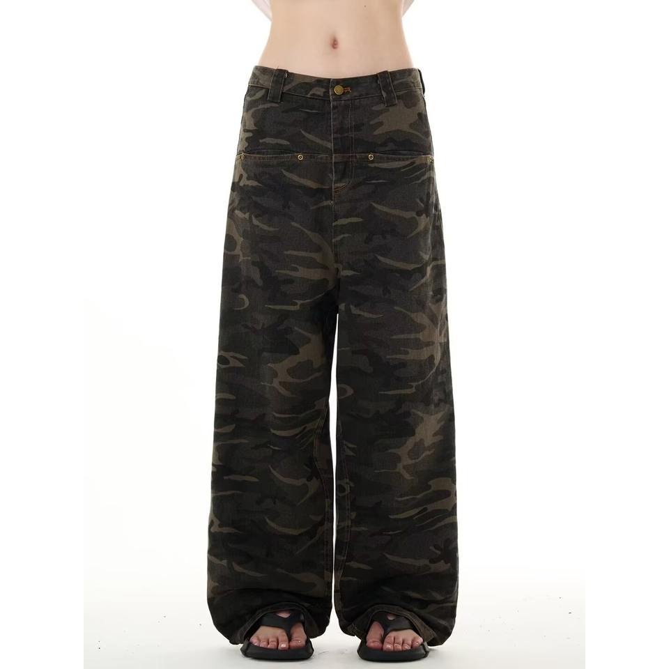 American Style Sports Camouflage Cargo Pants Unisex High Street Spring Loose Retro Straight Casual Denim Jeans