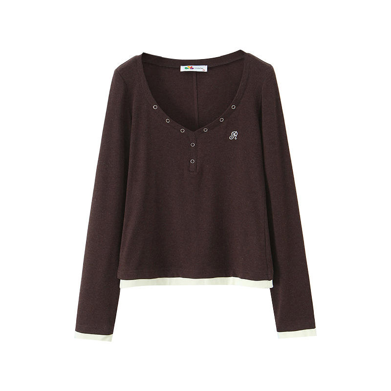 American Style V-neck Knit Long Sleeve Top Women Solid Color Embroidered N9315 Autumn Fashion T-shirt